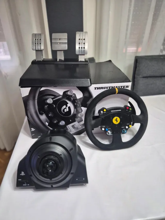 Detalles del productoVolante de simulación Thrustmaster TGT con aro Ferrari y pedalera.
