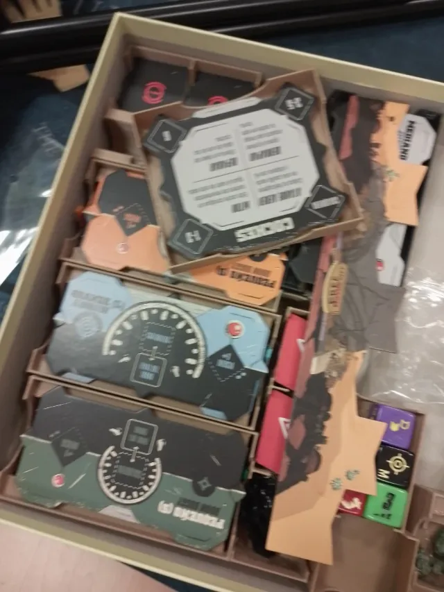 Incluye el juego base, con las cartas para un automa y un inserto para los componentes, todos los del base y algunos de las expansiones (que cabe todo en la caja base).