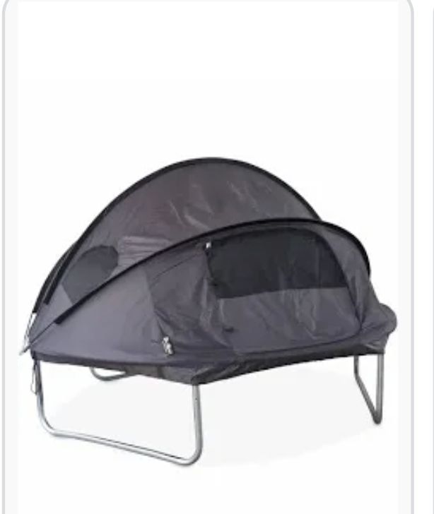 Por 100€ más, te llevas la cama elástica, aunque esa si que está muy usada. Habría que cambiarle la red y la protección que va encima de los muelles, aunque si la usas como tienda de campaña, la red te sobra.