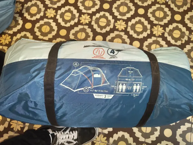 Detalles del productoTienda de campaña de Decathlon con capacidad para 4 personas. Ideal para acampadas y excursiones.