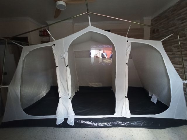 Detalles del productoTIENDA DE CAMPAÑA FAMILIAR TIPO CHALET PARA 9 PERSONAS, COMPLETAMENTE NUEVA, SOLAMENTE SE HA USADO UN FIN DE SEMANA, CON TRES DORMITORIOS DE 135X2'20, UN VESTIDOR DE 1'10X4'05, DOS VENTANAS CON MOSQUITERAS, Y LA PUERTA CONVERTIBLE EN AVANCE. MEDIDA TOTAL DE LA TIENDA, SIN CONTAR EL AVANCE 4'05X3'30 . NO TENGO FOTOS EN EL CAMPING YA QUE SÓLO LA HE USADO UN FIN DE SEMANA, LAS FOTOS ESTÁN HECHA EN MI CASA YA QUE NO TENÍA FOTOS DE ELLA. REGALO ARMARIO SIN ESTRENAR. (NO NEGOCIABLE)