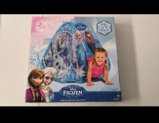 Detalles del productoPreciosa tienda de campaña de Frozen para niñ@s. Se monta en segundos. Ideal para jugar y divertirse. Decorada con personajes de Frozen: Olaf, Elsa y Anna. Para Niñ@s de más de 3 años.
