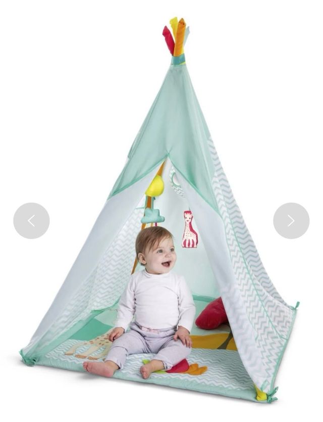 Detalles del productoTienda de actividades tipo tipi para bebés, con diseño divertido y colorido.