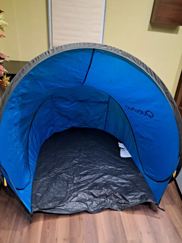Tienda de campaña azul, ideal para la playa o camping. Fácil de montar, el montaje es instantaneo y facil de transportar, no pesa nada.