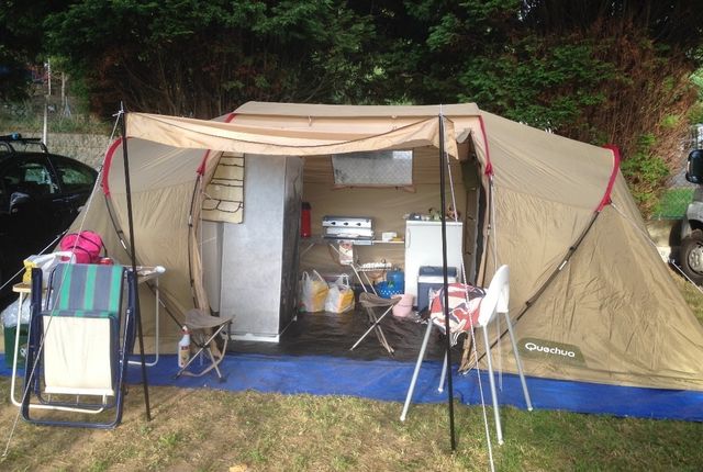 Se vende tienda de camping Quechua T4.2 XL, en buenas condiciones. - Amplia y espaciosa. - Color beige. - Ideal para familias.