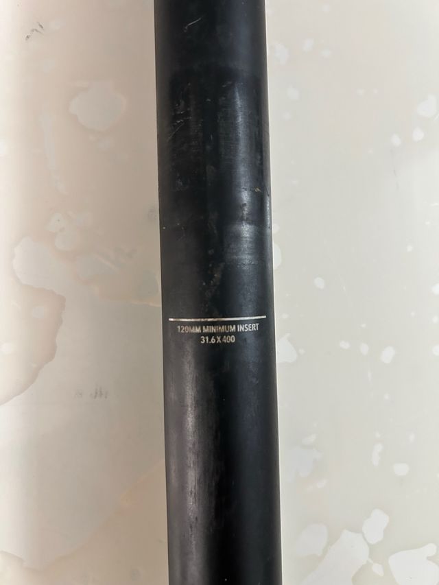 Tija de sillín de aluminio retirada de una Cannondale Scalpel. - Medidas: 31.6x400 mm. - Inserción mínima: 120 mm.
