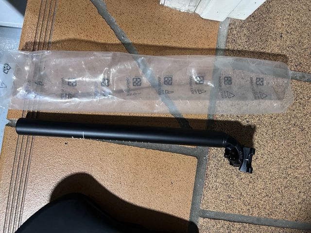 Tija de sillín de bicicleta fabricada en carbono. - Diámetro: 27.2 mm - Material: Carbono - Color: Negro procedente de bici nueva