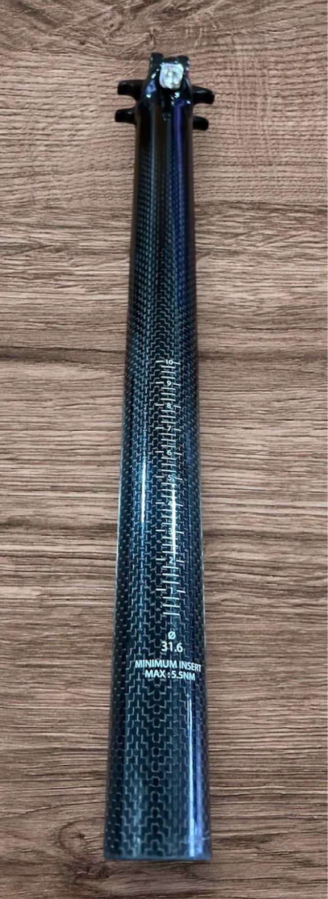 Tija para bicicleta en muy buen estado. Material tipo carbono, ligera y resistente.