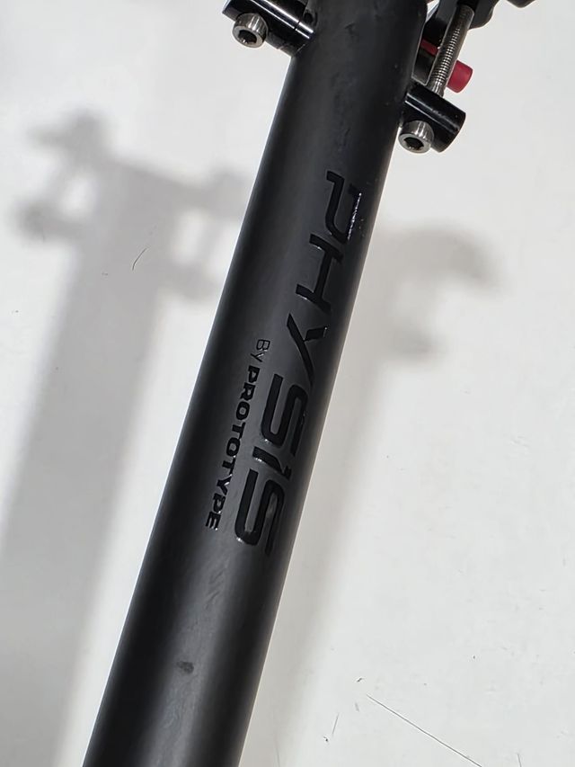 Tija de sillín de carbono de la marca Prototype, modelo Physis. - Material: Carbono. - Acabado: Negro mate. - Diseño grabado 'Physis by Prototype'.