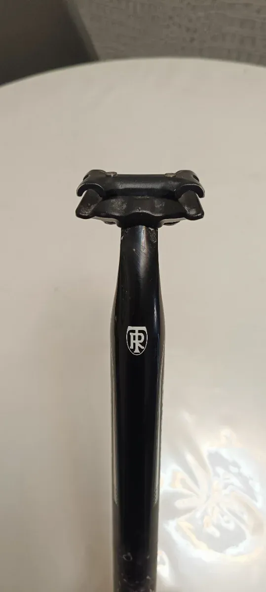 Tija de sillín Ritchey en color negro. Presenta un diseño clásico y robusto. - Logo de la marca en blanco. - Mecanismo de sujeción del sillín.