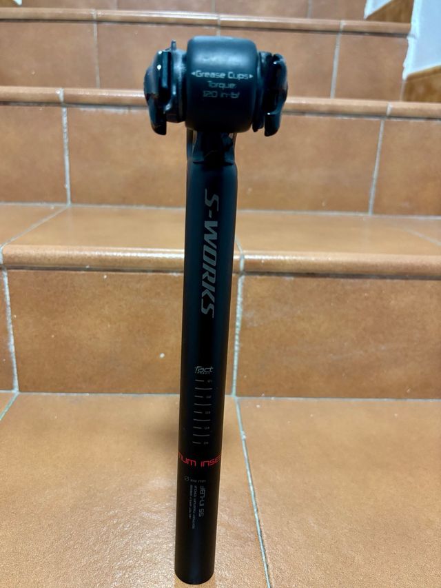 Tija de sillín Specialized S-Works FACT de carbono. - Diámetro: 27.2 mm - Torque: 120 in-lb - Incluye Grease Cups Muy muy poco uso, como nueva