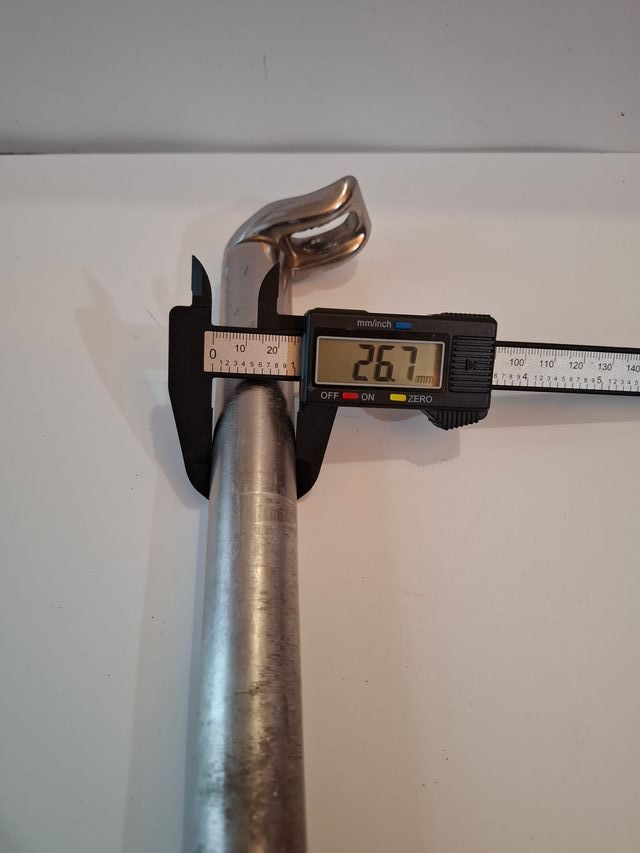 Tija de sillín para bicicleta fabricada en aluminio. Falta la parte superior - Diámetro: 26.7 mm. - Material: Aluminio.