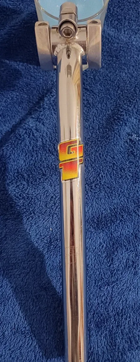 Tija de sillín cromada para bicicleta BMX de la marca GT.