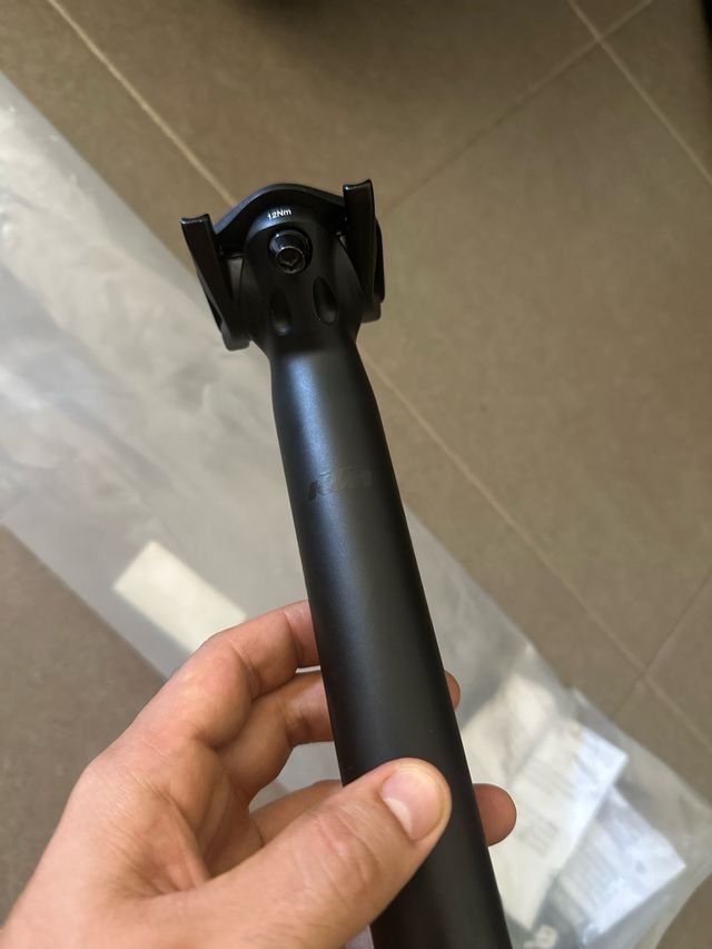 Vendo tija de sillín KTM Team, prácticamente nueva. Ideal para bicicletas de montaña. - Marca: KTM. - Modelo: Team. - Color: Negro mate. - Acabado impecable. -26.8mm