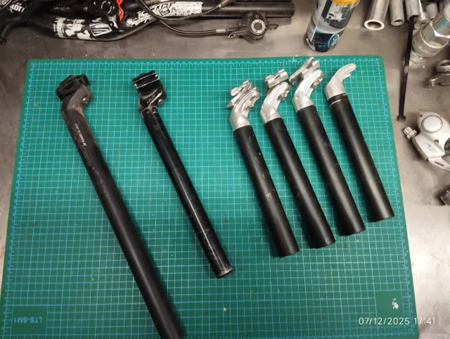 Conjunto de tijas de sillín de bicicleta, disponibles en diferentes modelos y medidas. xuni - Tija de sillín negra y plateada.