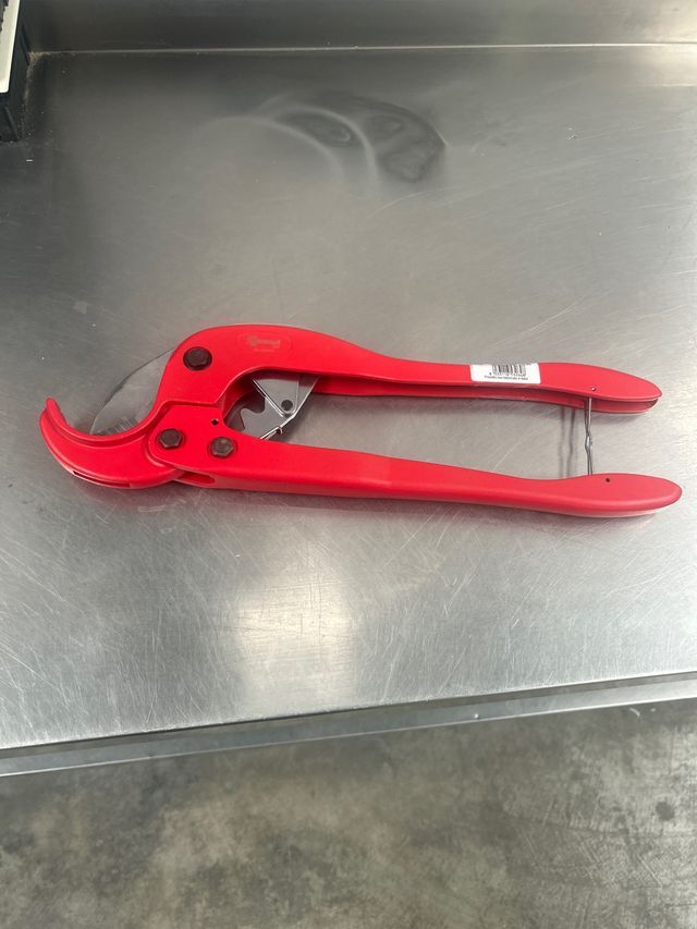 Tijeras cortatubos de color rojo, diseñadas para un corte limpio y preciso. - Cuchilla afilada para un corte eficiente. - Mangos ergonómicos para un agarre cómodo.