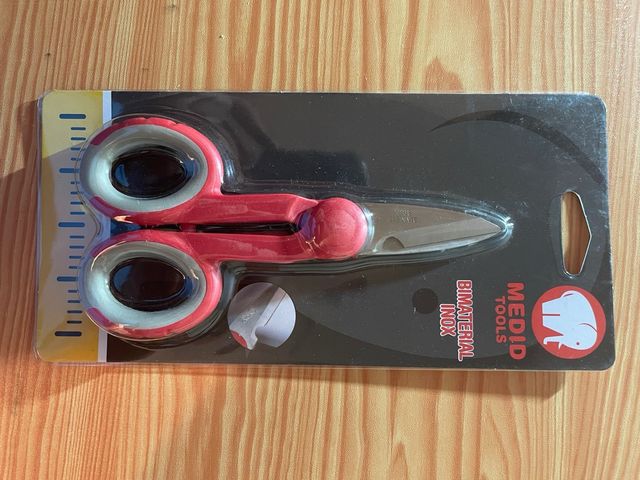 Tijeras de electricista de la marca Medid Tools. - Hojas de acero inoxidable. - Mango bimaterial ergonómico. - Diseño para zurdos y diestros.