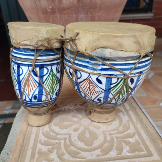 Detalles del productoPar de timbales de estilo marroquí con un diseño pintado a mano.