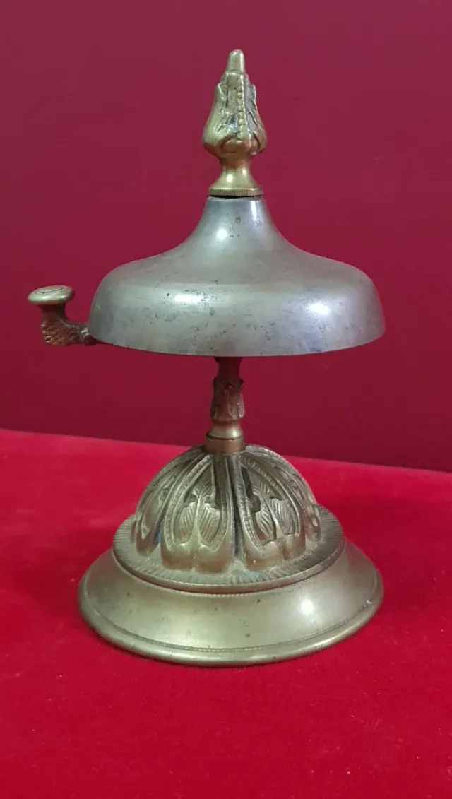 Antiguo timbre de recepción de hoteles.Bronce con base hornamentada. 15x9cm.