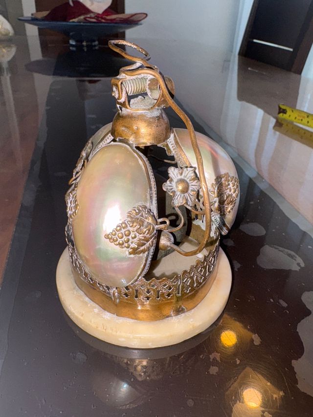 Detalles del productoAntiguo timbre de servicio con detalles en nácar y metal dorado. Su diseño evoca épocas pasadas.