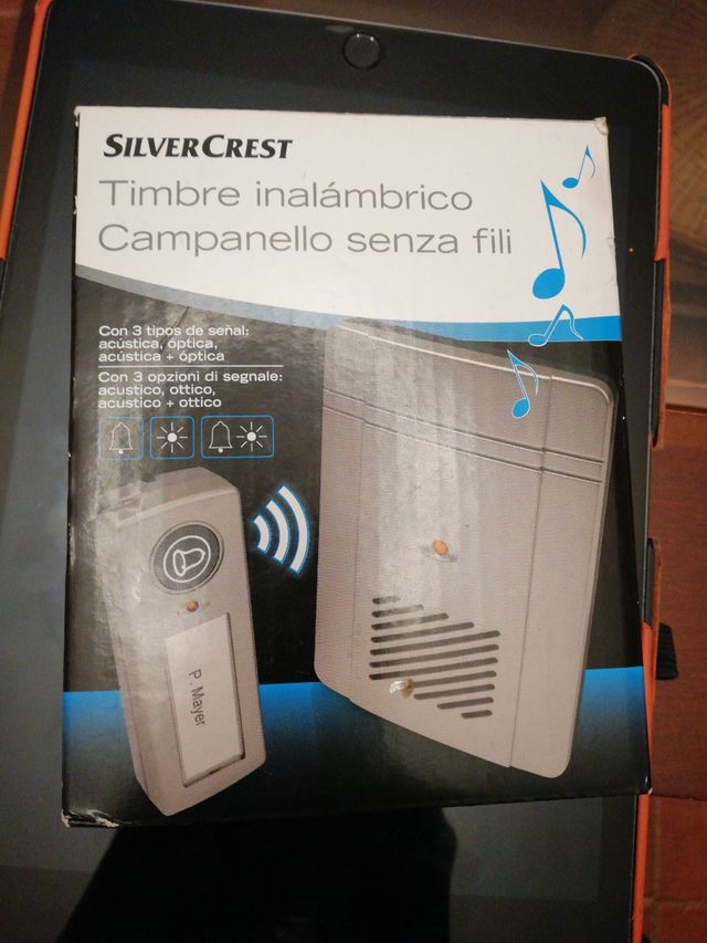 Detalles del productoTimbre inalámbrico de la marca SilverCrest. Incluye un emisor y un receptor.