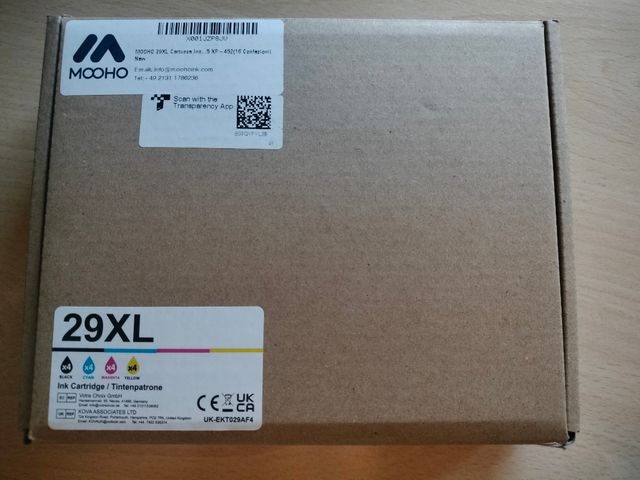Detalles del productoUna caja de tinta de impresora EPSON XP-235. Falta un cartucho de color negro, pero los demás están en perfectas condiciones y sin usar. Van 3 de color negro, 4 de amarillo, 4 de rosa y 4 de azul. En total son 15 cartuchos. Es la 29XL