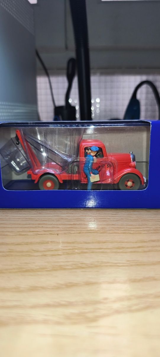 Tintin Camión grúa en miniatura, color rojo. - Figura de conductor incluida. - Detalle de la grúa. - Presentado en su embalaje original.