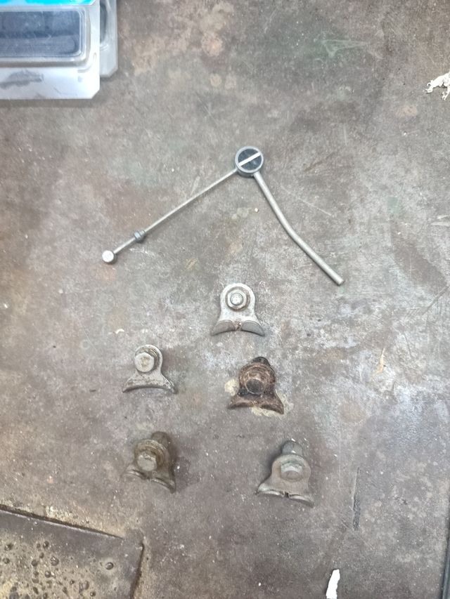 Detalles del productoPiezas para sistema de freno cantilever de bicicleta. Incluye el tirador principal y varias piezas de sujeción.