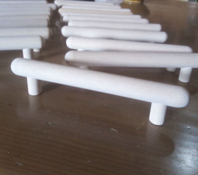 tiradores madera de haya sin barnizar 15 cms de largo distancia entre tornillos 11,2 cms 2 euros unidad