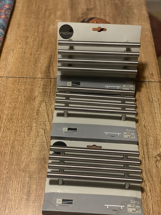 Pack de 12 tiradores de acero inoxidable, modelo Sara. - Acabado en acero inoxidable. - Diseño moderno y elegante. - Incluye tornillería para su instalación.