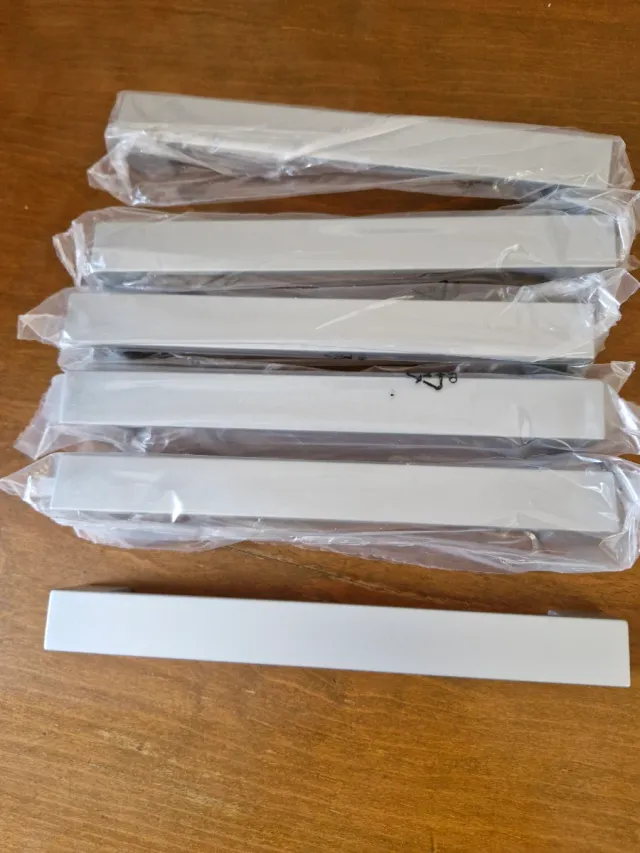 Pack de seis tiradores de armario plateados, nuevos y sin usar. - Diseño moderno y elegante. - Acabado metálico. - Ideales para renovar muebles.