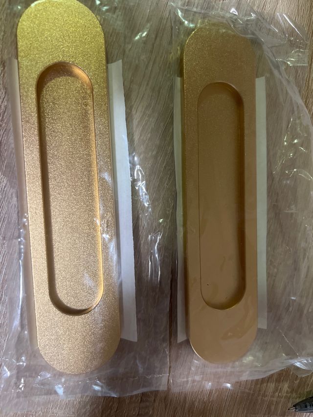 Detalles del productoDos tiradores para puertas correderas, color dorado. Son elegantes y son para edtrenar