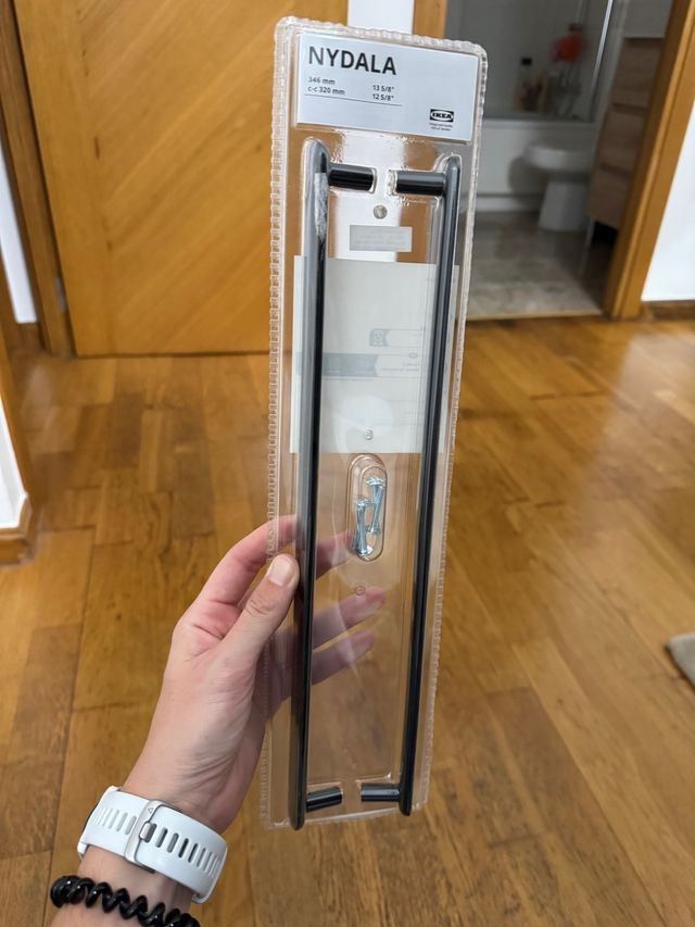 Detalles del productoJuego de tiradores NYDALA de IKEA en color negro. Perfectos para dar un toque moderno a tus muebles.
