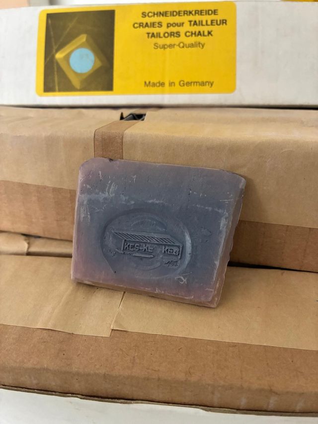 Tiza de sastre de color azul, algunas estan descoloridas, pero funcionan bien. 1 caja con 4 tiras de 25 unidades = 50€/caja 2 cajas = 80€ 2 cajas disponibles