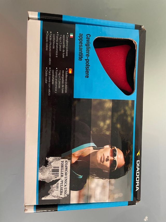 Detalles del productoTobillera/pulsera recargadas de 1 kg . Marca DIADORA. 2 piezas. Forma anatómica y confortable. Facil cierre de Velcro.