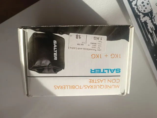 Detalles del productoTobilleras y muñequeras Salter con lastre de 1kg cada una. Ideales para complementar tu entrenamiento.
