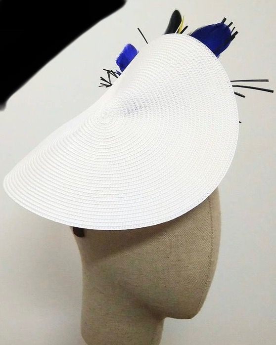Tocado blanco y plumas azules y amarillas Se sujeta con diadema Puesto en una ocasión Precio de compra 95€