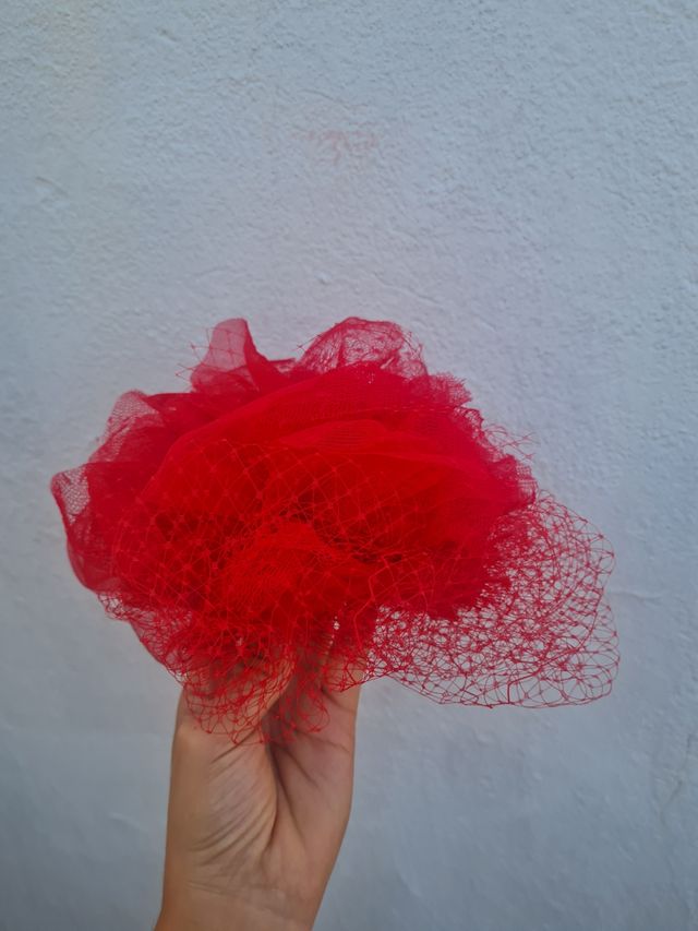 Tocado rojo de la Marca Cosa Fina. Diseñado para mi madre. Solo tiene un uso.