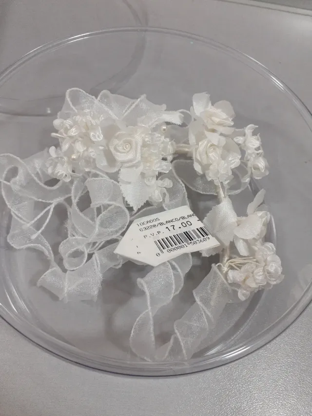 Tocado blanco ceremonia flores y perlas