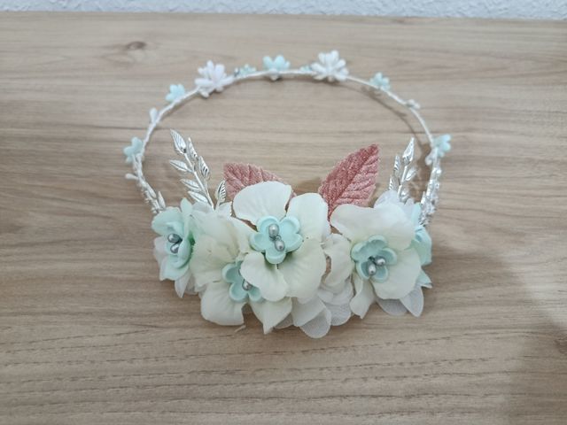 Tocado comunión flores blancas y verde agua