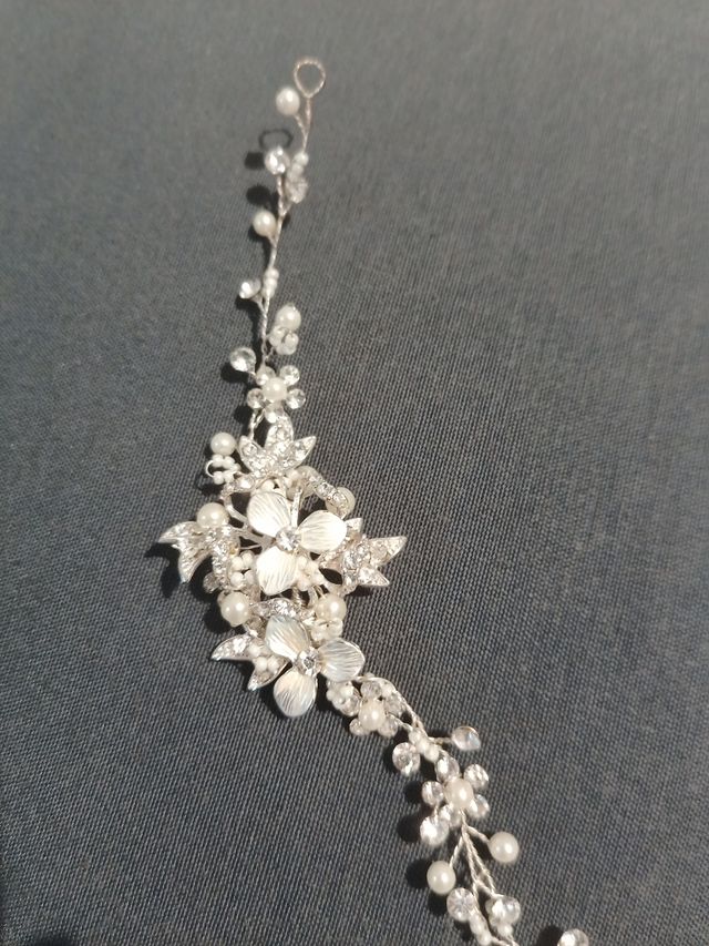 Tocado de pelo para novias y fiesta,plata de ley con cristales de Swarovski y perlas,un solo uso,precio de 200€,venta por 85€