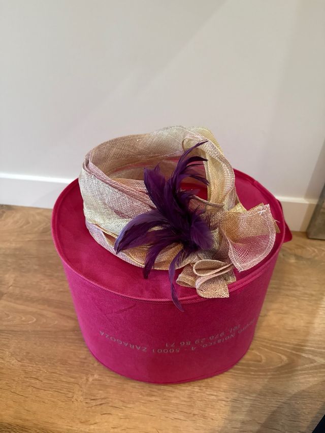 Tocado fiesta tonos rosas y dorado tipo turbante