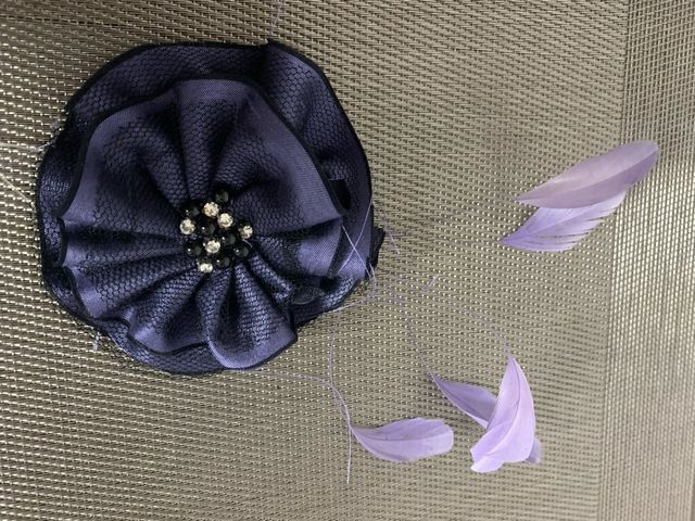 Tocado flor lila con pedrería y plumas
