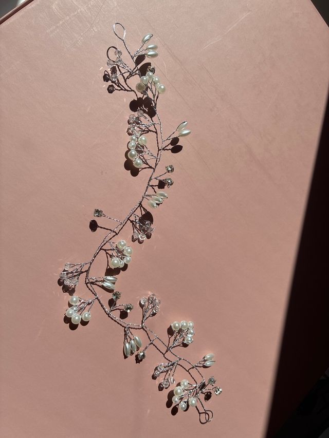 Tocado novia: perlas & brillos plata