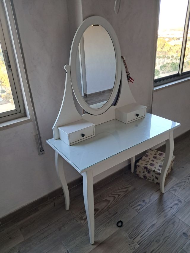 Tocador blanco con espejo y cajones.HEMNES,IKEA.