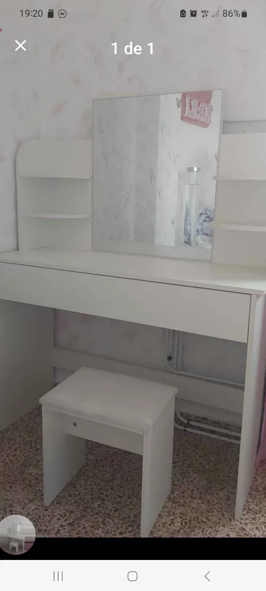 Tocador blanco con espejo y taburete