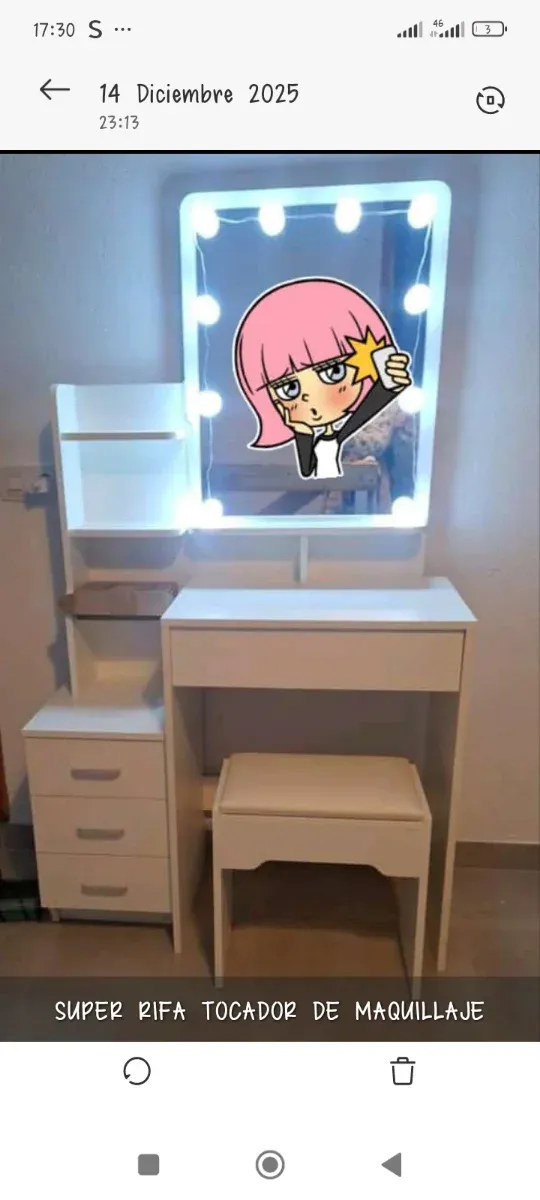 Detalles del productoTocador de maquillaje con espejo y luces LED.