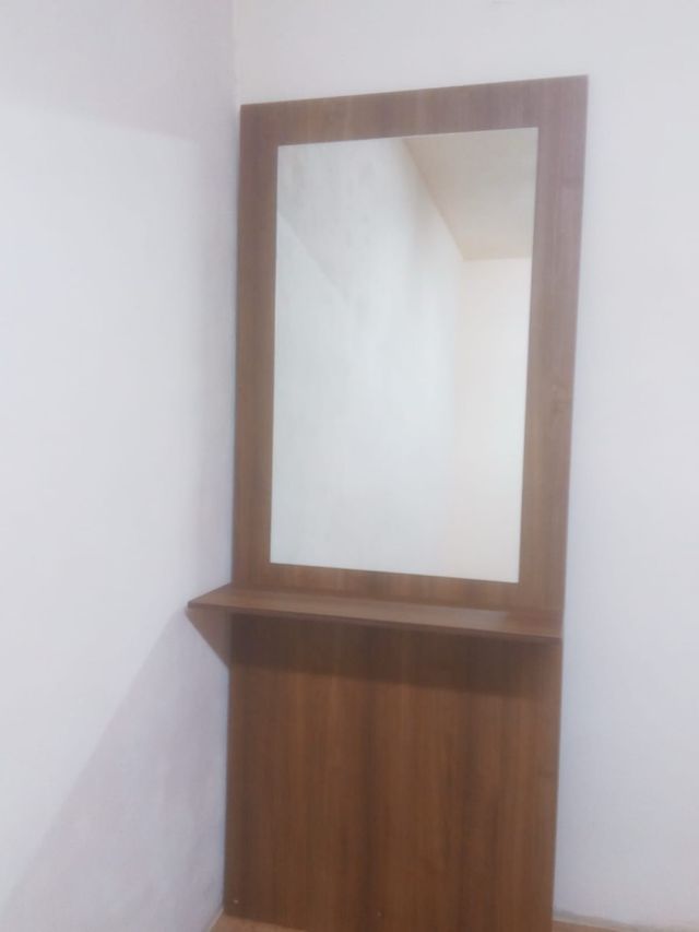 Tocador de peluquería con espejo y reposapiés
