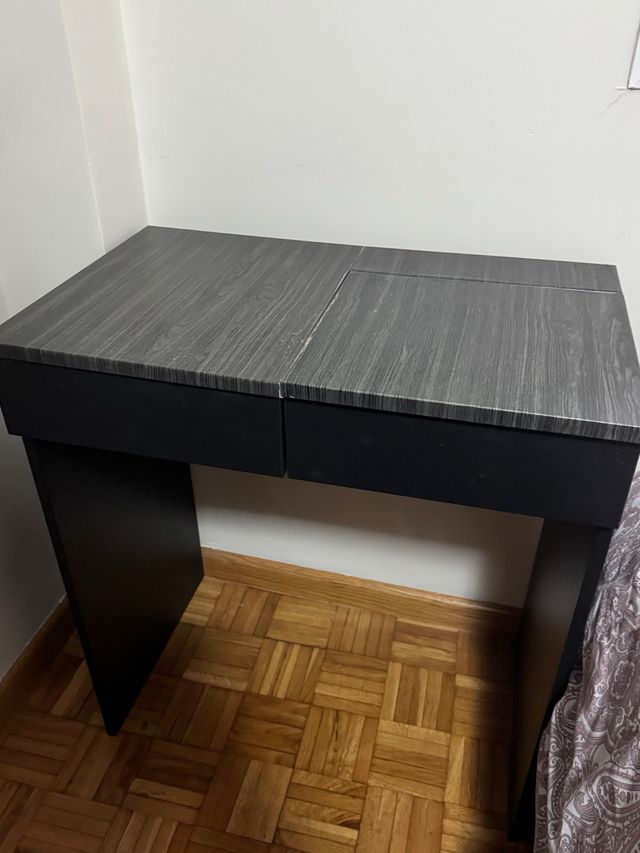 Tocador negro y gris con tapa abatible