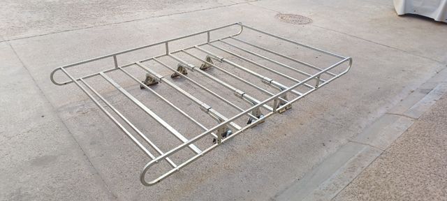 Detalles del productoTodo terreno o furgón. enorme. acero galvanizado. con 8 puntos de fijación. aunque solo aparezcan 6. la adapte y tuve que quitar 2 para ello. conservo todo. hasta las gomas para su agarre en contacto con las molduras del techo. proviene de un Range Rover Clásico.